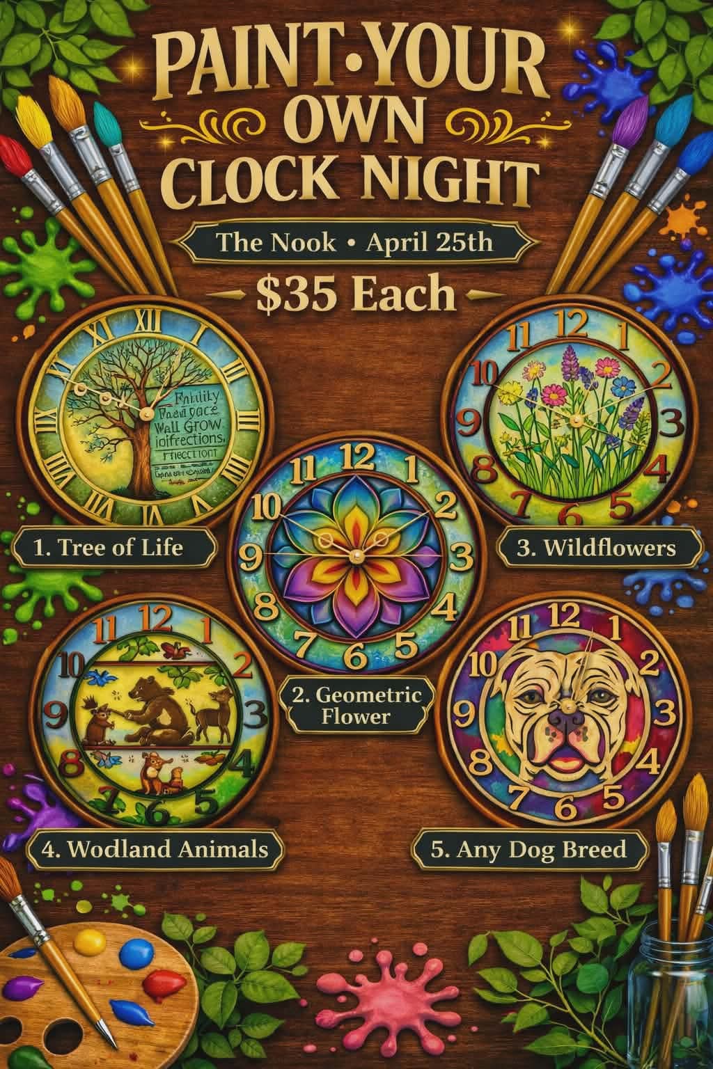 « All EventsCustom Clock WorkshopApril 25 @ 3:00 pm - 5:00 pm« Vintage Pop UpPaint, Plant and Sip! »Amsterdam Engraving Co is bringing one of their best sellers to The Nook for a fun workshop! Choose your design when you sign up, then come assemble and paint your new clock!Sign Up: https://forms.gle/648nx3f2oiuwKvmS9 (opens in a new tab) Add to calendar Google Calendar iCalendar Outlook 365 Outlook Live Details Date: April 25 Time: 3:00 pm - 5:00 pm Website: https://www.facebook.com/events/797301436768399 Venue The Nook 1451 5S Amsterdam, NY 12010 United States + Google Map
